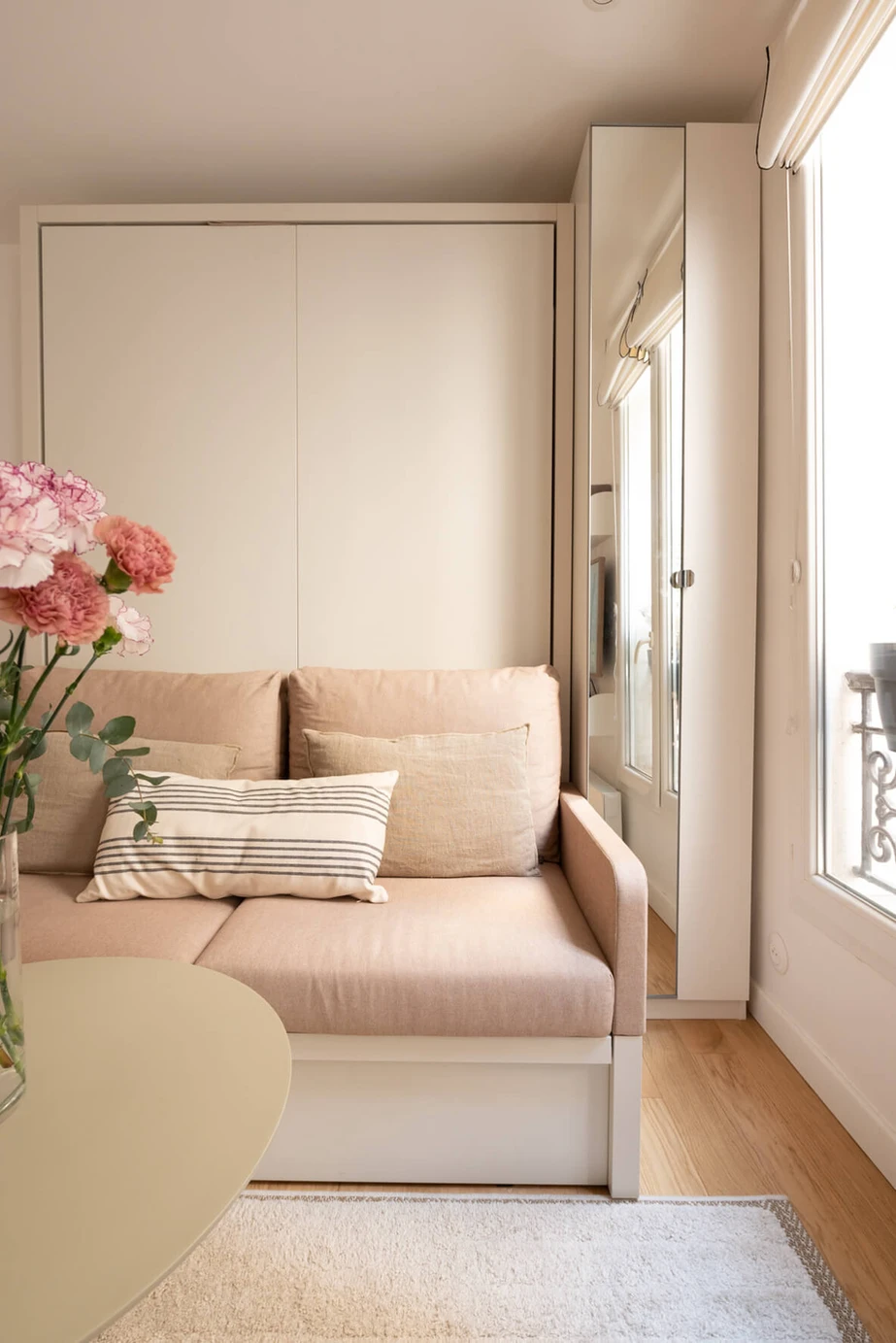 النصيحة الأولى الواضحة، ولكن من الضروري أن تتذكرها: تخلص من الأشياء غير الضرورية. هل أثاثك القديم بالكامل ضروري حقًا في شقتك الصغيرة التي تقل مساحتها عن 30 مترًا مربعًا؟ سيتعين علينا اتخاذ الخيارات. لذا، استفد من هذا للتخلص من جميع الحلي والأثاث الضخمة بصريًا والتي لا تعمل بما يكفي لتحسين مساحتك الصغيرة.